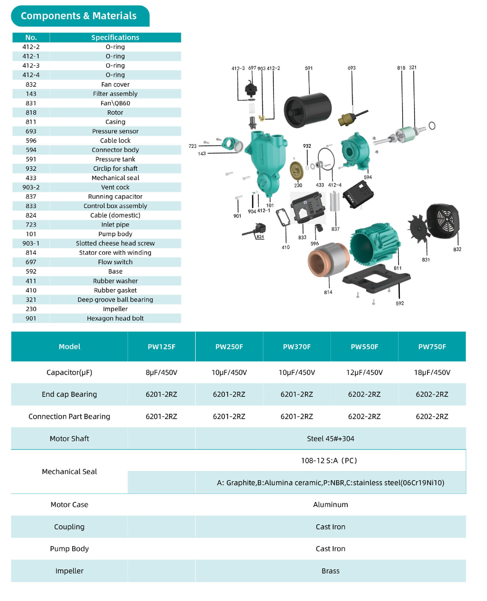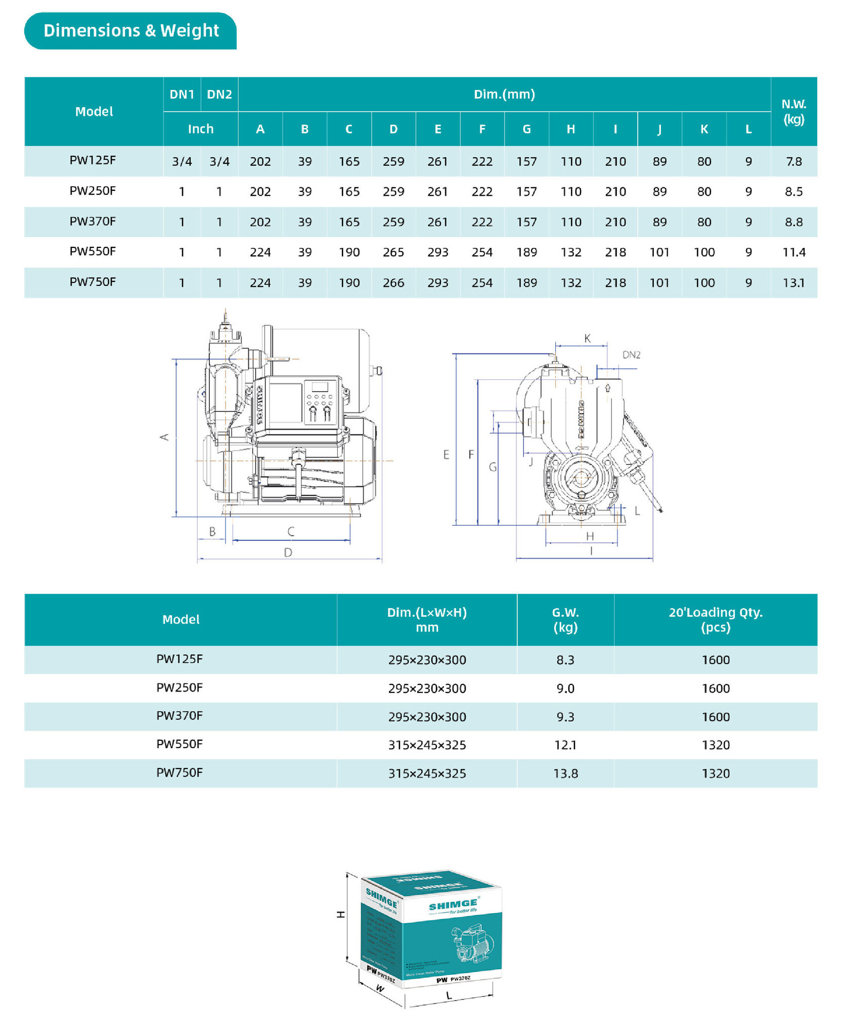 Автоматический самовсасывающий поверхностный насос серии PW-F, Shimge: характеристики