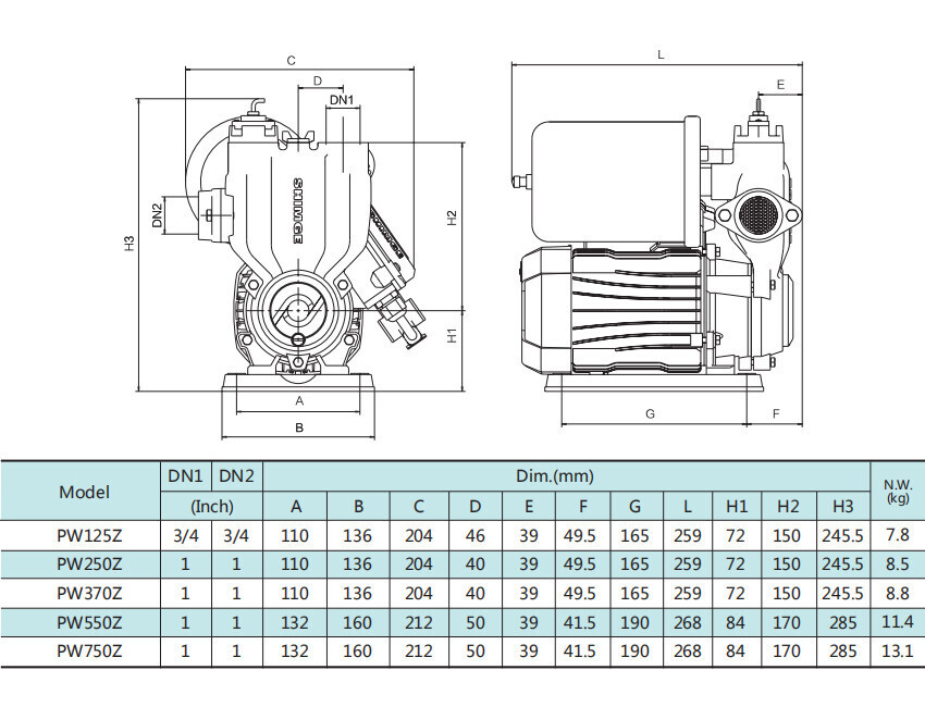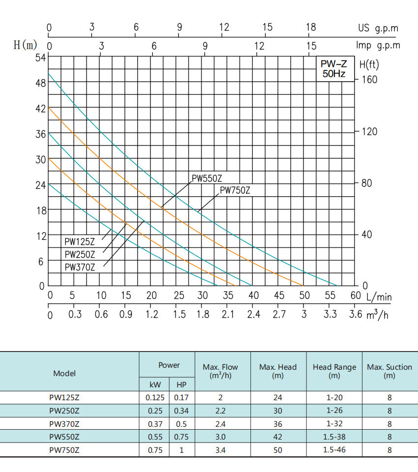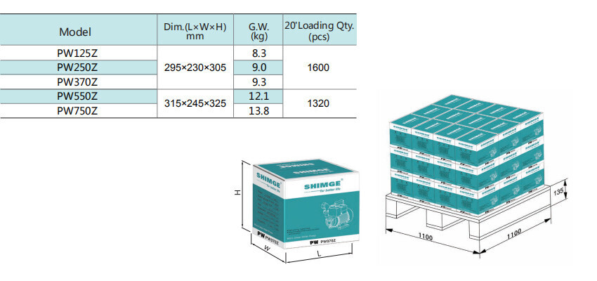 Автоматический самовсасывающий поверхностный насос серии PW-Z, Shimge: характеристики