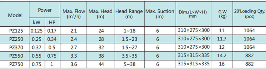 Автоматический самовсасывающий поверхностный насос серии PZ, Shimge: характеристики