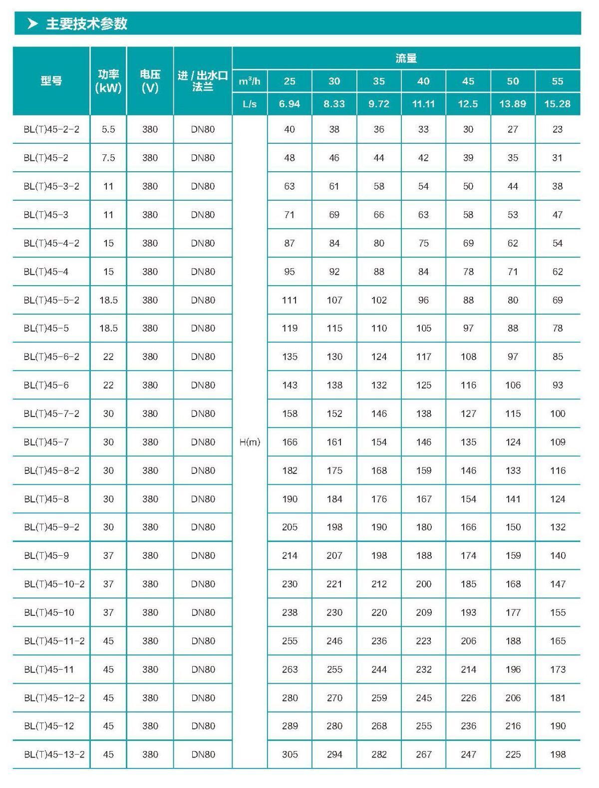 BL Вертикальный многоступенчатый центробежный насос из нержавеющей стали с чугунными вставками, DN65 (до +120°С) для этиленгликоля: характеристики