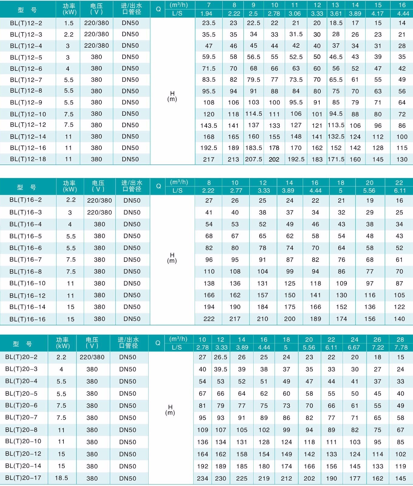 BLT Вертикальный многоступенчатый центробежный насос из чугуна, DN50 (до +120°С) для этиленгликоля: характеристики