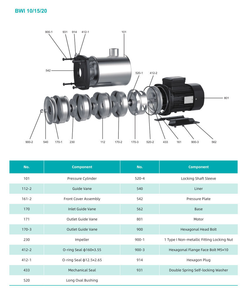 Горизонтальный многоступечатый центробежный насос серии BWI, Shimge