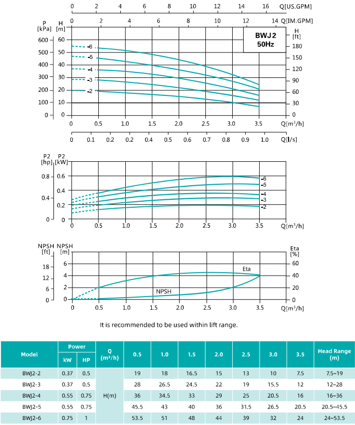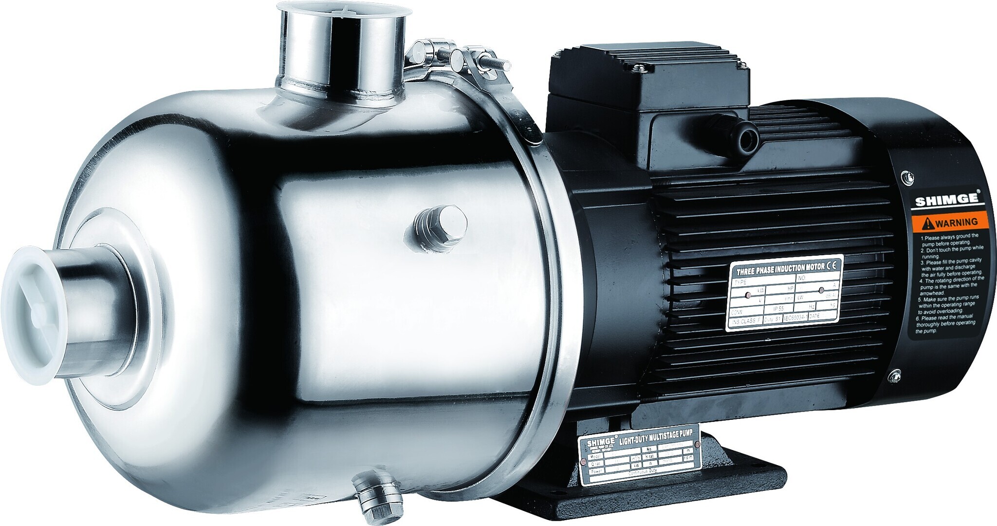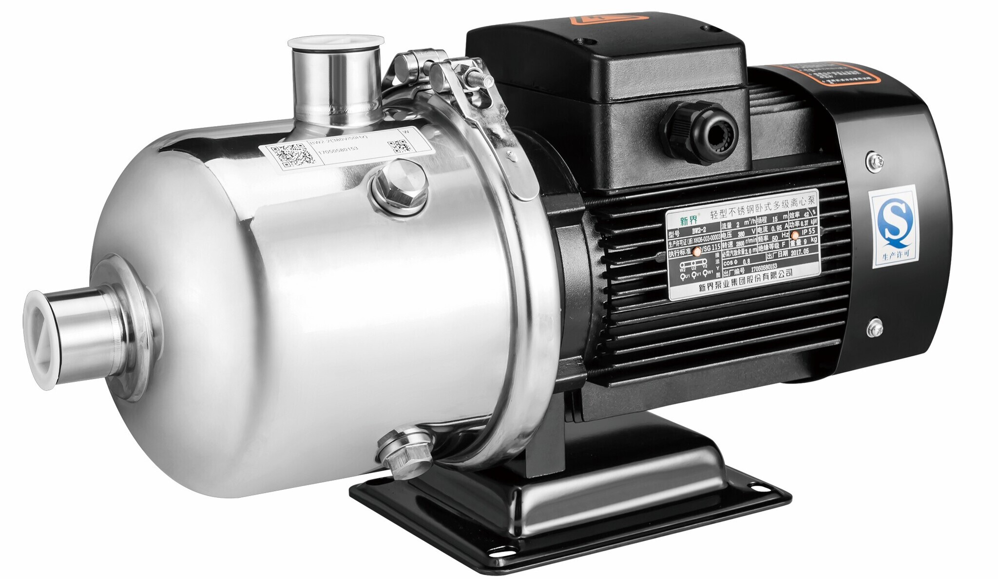 Горизонтальный многоступенчатый центробежный насос цилиндрического типа серии BW, Shimge (двиг. IE2, до +120°C): характеристики
