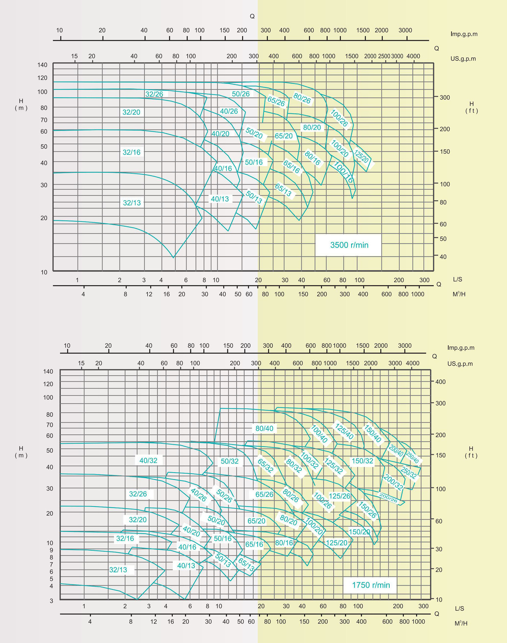 Насосы с одинаковыми техническими характеристиками имеют различную производительность за счет изменения наружного диаметра рабочего колеса (обозначается добавлением букв A, B, C и т.д. после номера модели насоса).