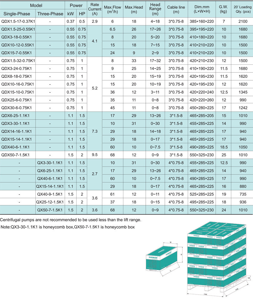 Погружной дренажный насос серии QDX-K, Shimge: характеристики