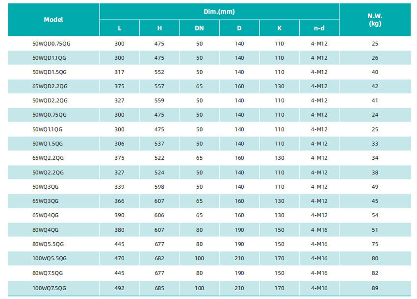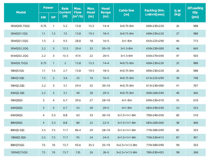 Погружной дренажный насос серии WQ-QG, Shimge: характеристики