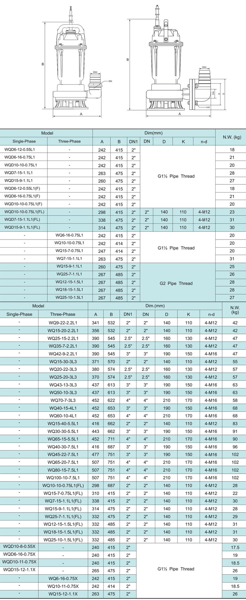 Погружной дренажный насос серии WQ(D)-L, Shimge: характеристики
