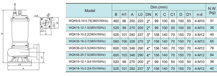 Погружной дренажный насос серии WQK, Shimge: характеристики