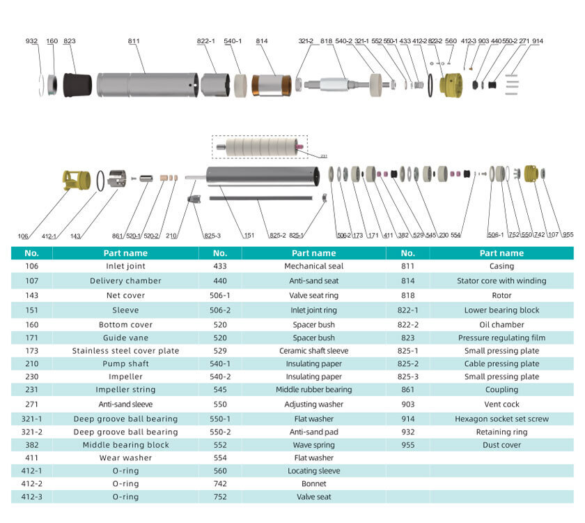 • Глубина погружения: 5 ~ 70м ниже статического уровня грунтовых вод