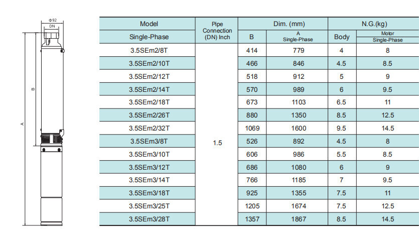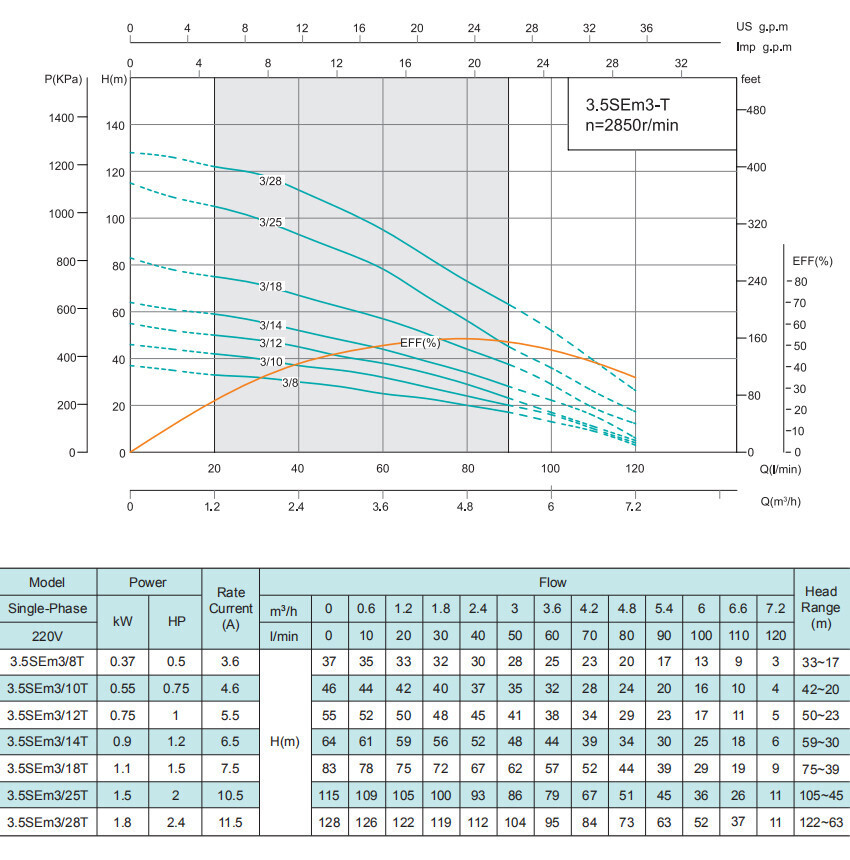 Погружной скважинный насос серии 3.5SEm-T, Shimge: характеристики