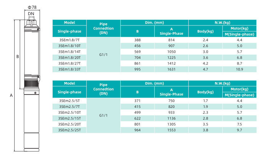 Погружной скважинный насос серии 3SEm-T, Shimge: характеристики