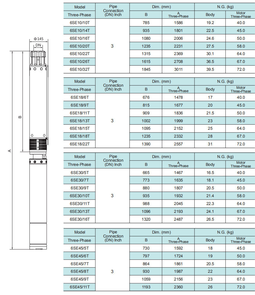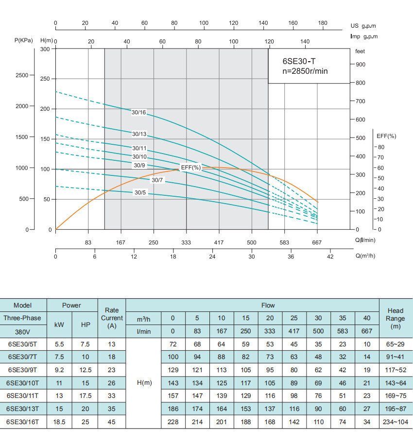 Погружной скважинный насос серии 6SE-T(K2) , Shimge