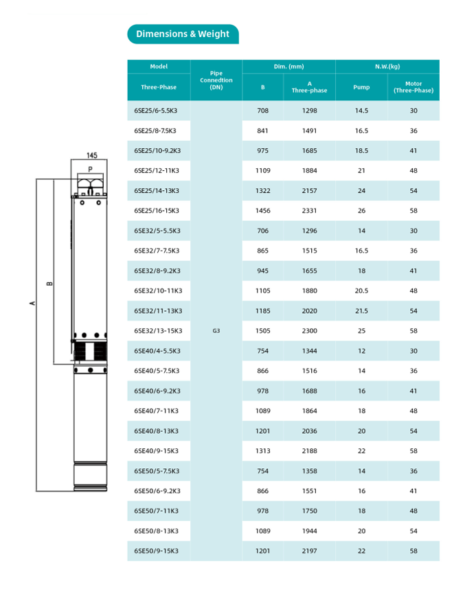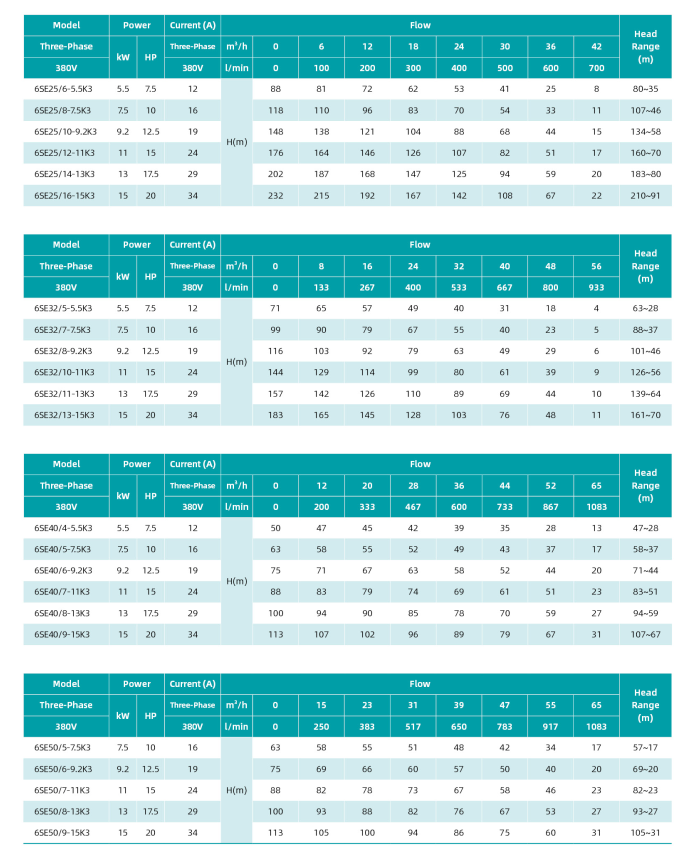 Погружной скважинный насос серии 6SE(K3), Shimge: характеристики