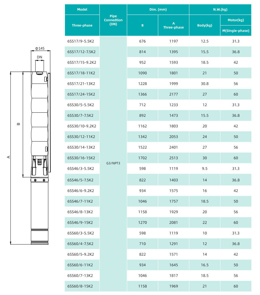 Погружной скважинный насос серии 6SS(K2), Shimge