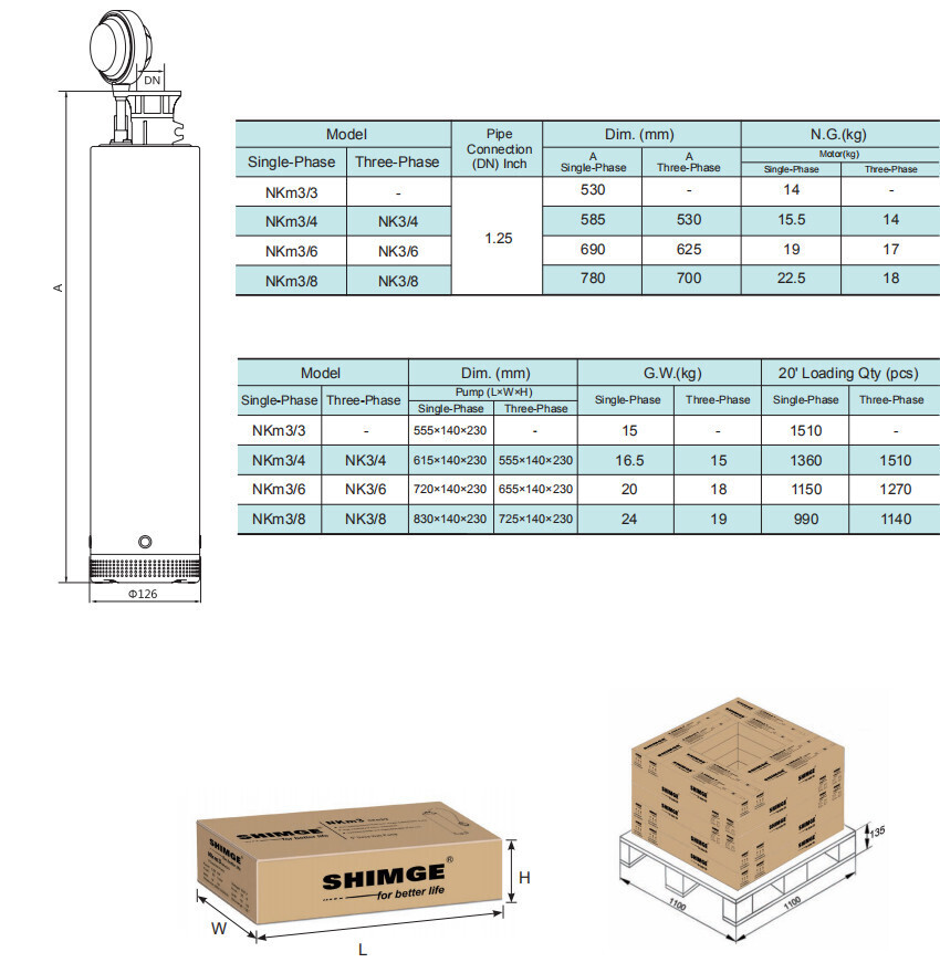 Погружной скважинный насос серии NK(m), Shimge: характеристики