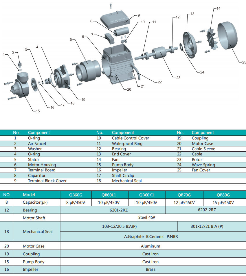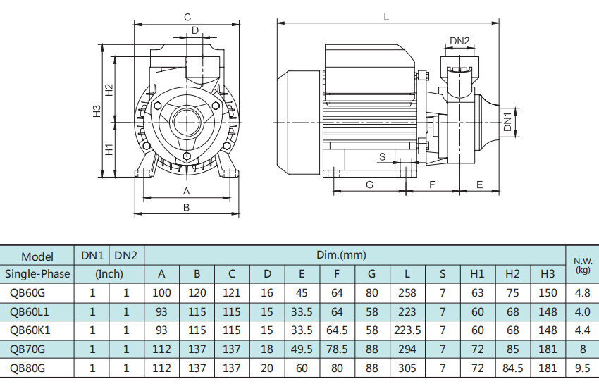 Поверхностный вихревый насос серии QB, Shimge: характеристики