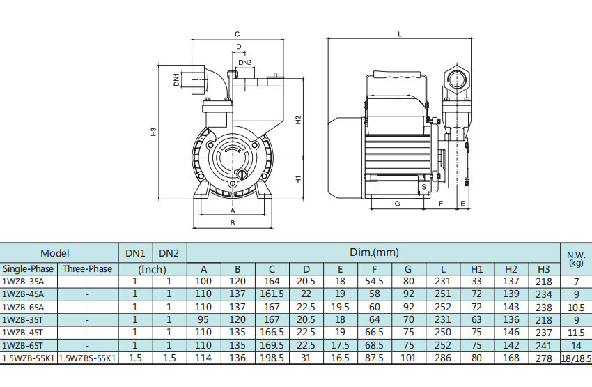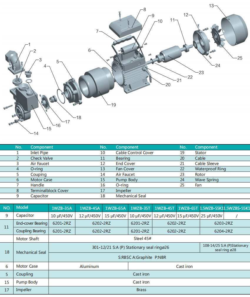 Самовсасывающий поверхностный насос серии WZB, Shimge: характеристики