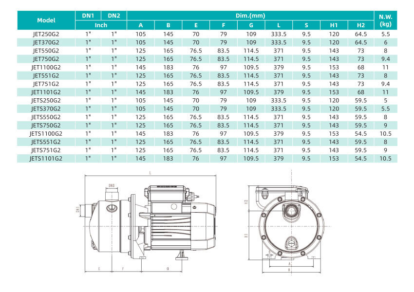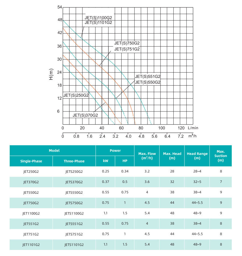 Самовсасывающий струйный насос серии JET-G2, Shimge: характеристики