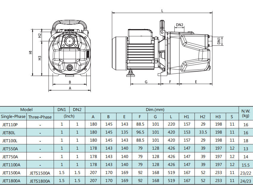 Самовсасывающий струйный насос серии JET, Shimge: характеристики