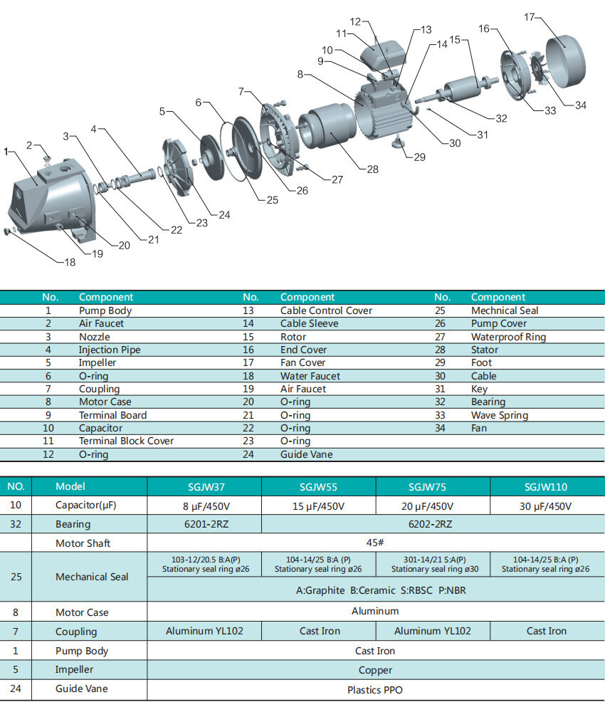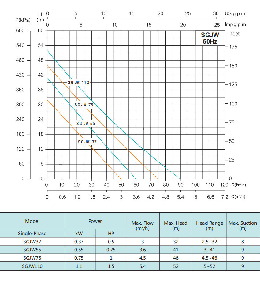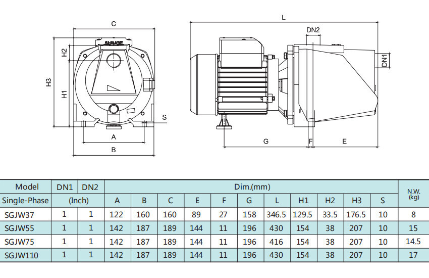 Самовсасывающий струйный насос серии SGJW-S, Shimge: характеристики