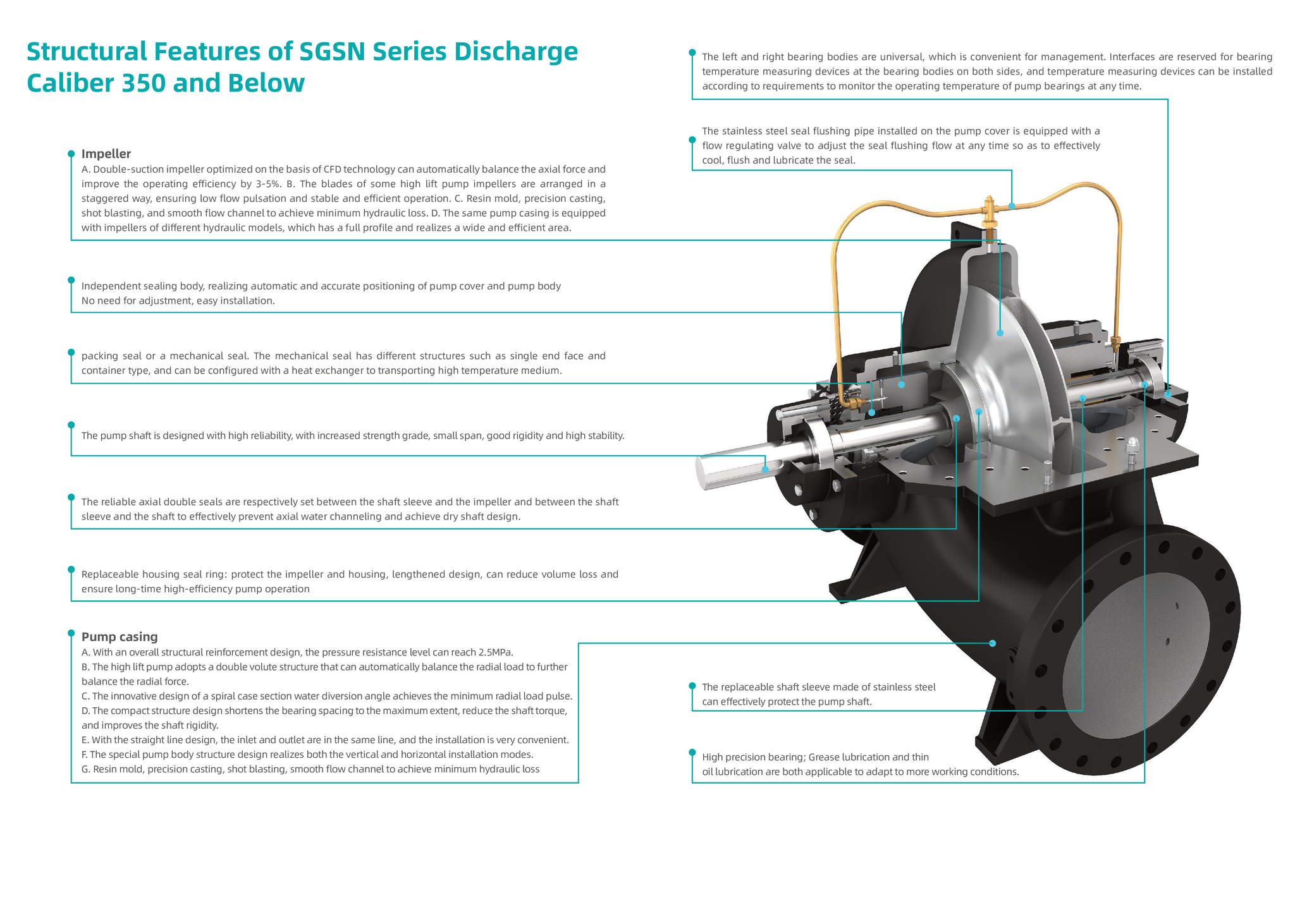 • Оптимизированная гидравлическая конструкция, основанная на технологии CFD, позволяет автоматически сбалансировать осевое и радиальное усилие для обеспечения высокой эффективности