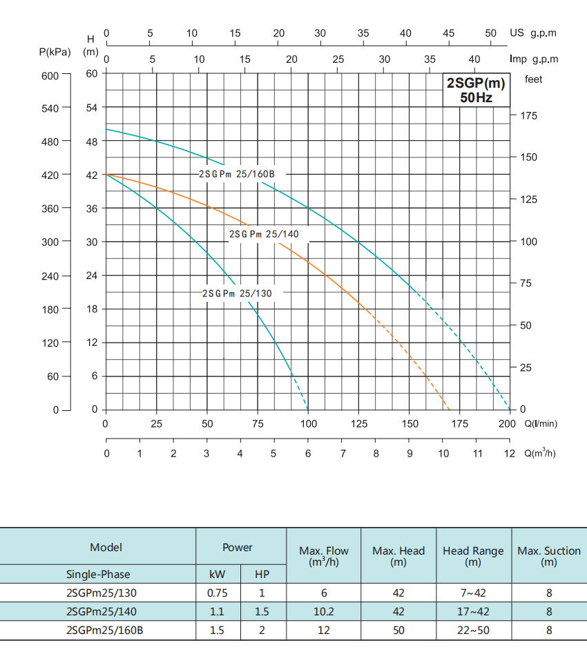 Центробежный насос серии 2SGP(m), Shimge: характеристики