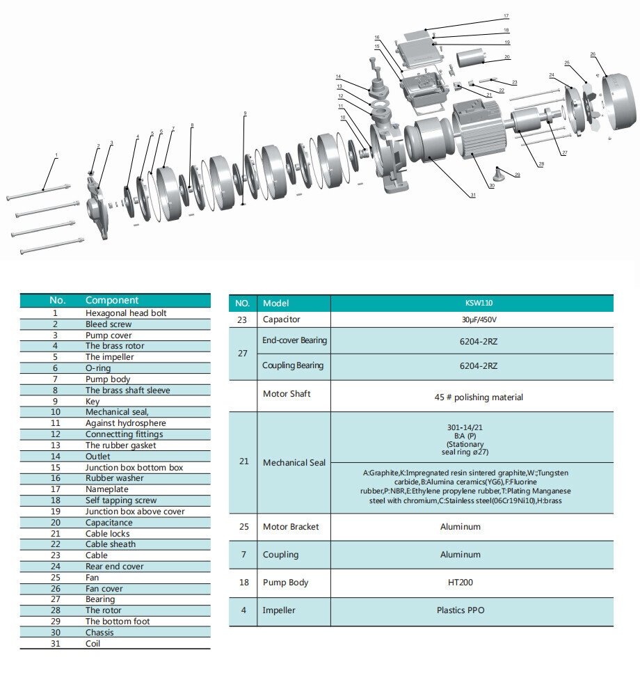 Поверхностные центробежные многоступенчатые насосы SHIMGE KSW состоят из чугунного корпуса, двигателя, насосной части и уплотнителя.