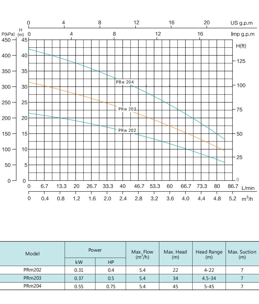 Центробежный насос серии PRm, Shimge: характеристики
