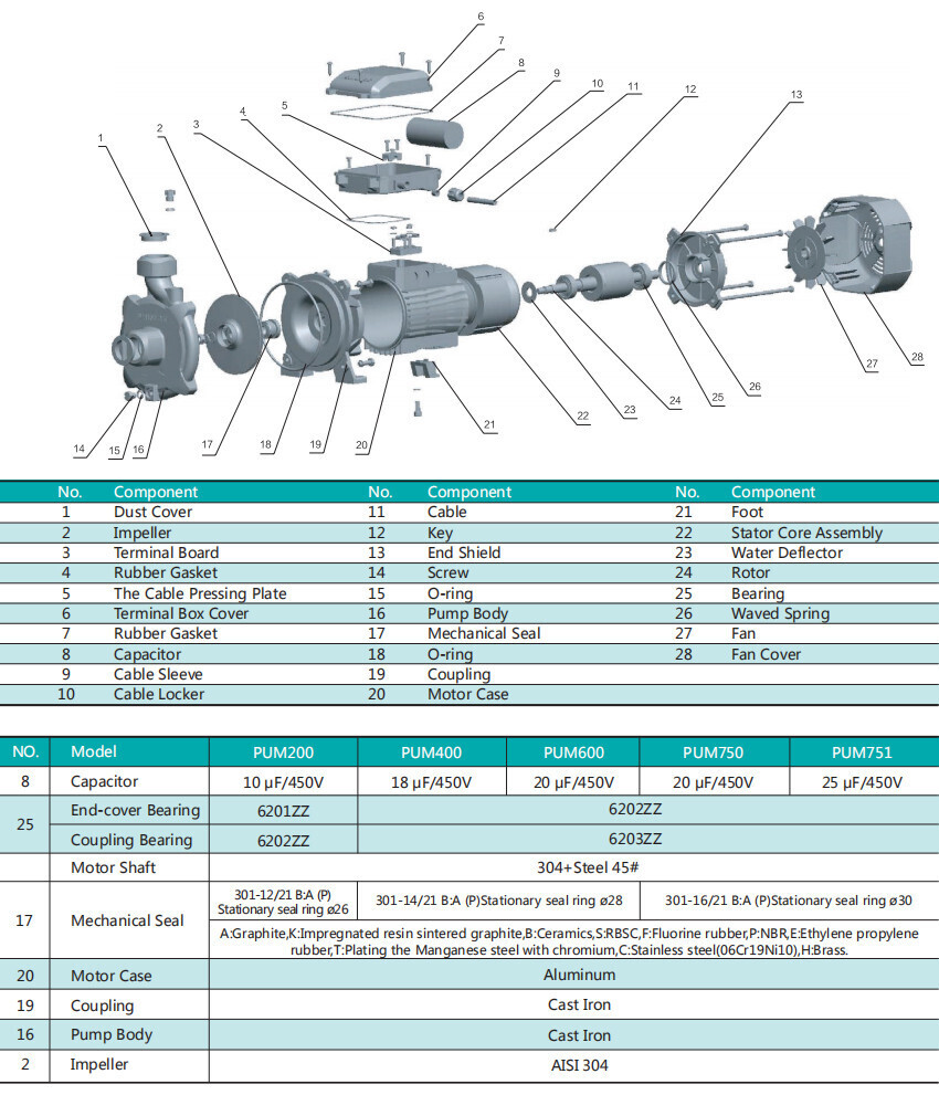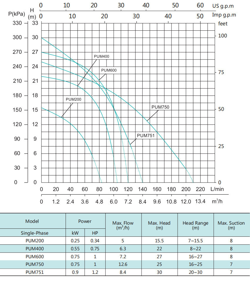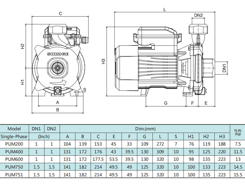Центробежный насос серии PUm, Shimge: характеристики