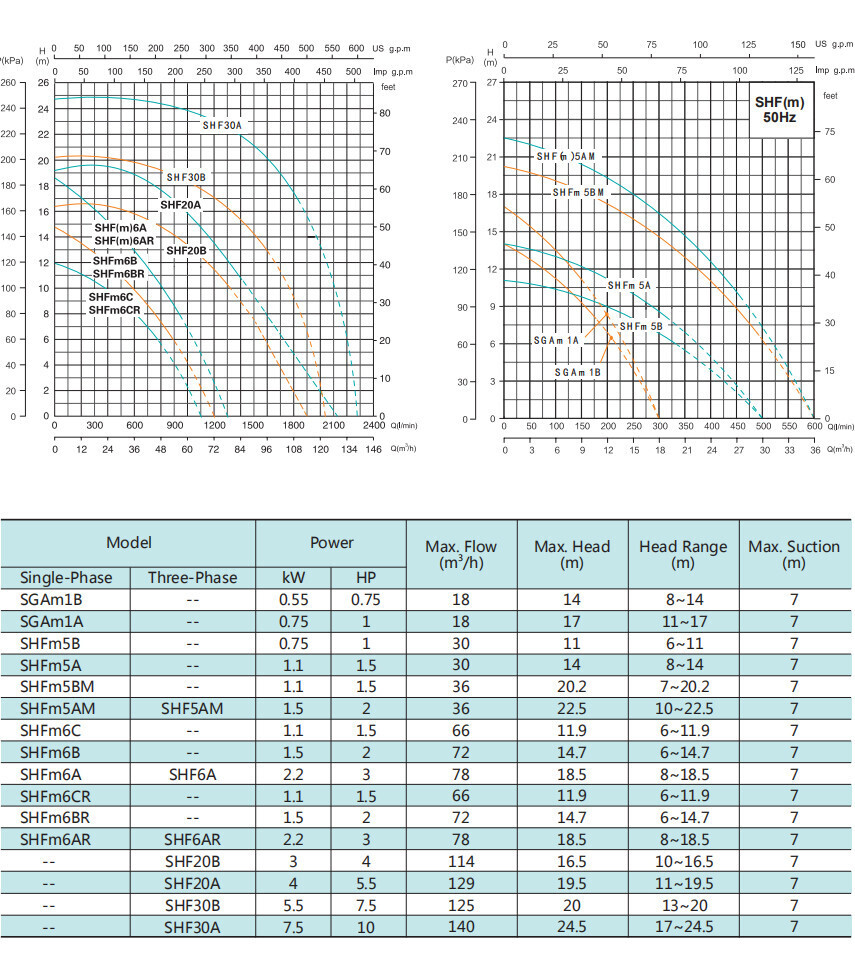 Трехфазный центробежный насос серии SHF(m), Shimge (чугунное рабочее колесо): характеристики
