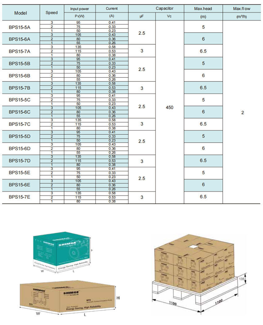 Циркуляционный насос с интеллектуальным преобразователем частоты серии BPS, Shimge: характеристики