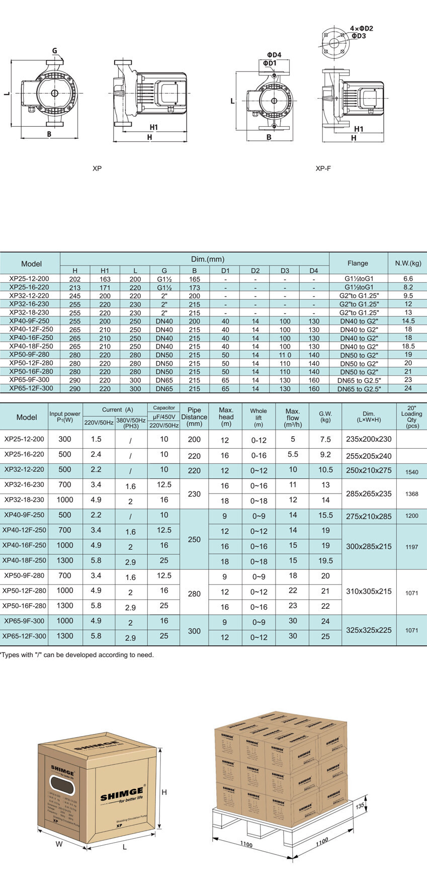 Циркуляционный насос серии ХР, Shimge: характеристики