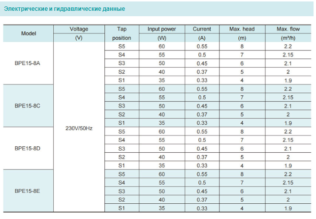 Циркуляционный насос серии ВРЕ, Shimge: характеристики
