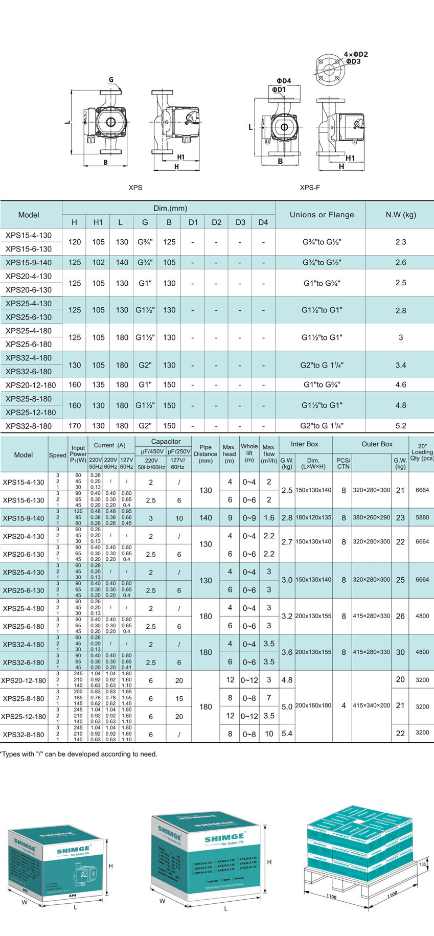 Циркуляционный насос серии XPS-F, Shimge: характеристики