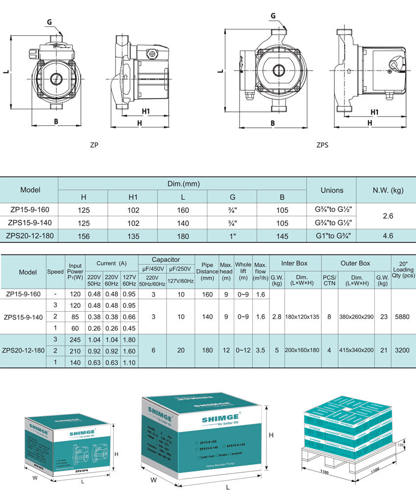 Циркуляционный насос серии ZP/ZPS, Shimge